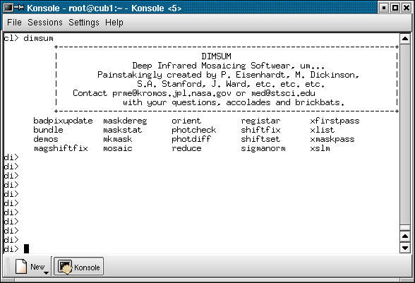 The DIMSUM external package is used to produce accurate sky subtracted images from dithered observations. The package was developed by P. Eisenhardt (prme@kromos.jpl.nasa.gov), M. Dickinson (med@stsci.edu), S. A. Standford, and J. Ward with assistance from F. Valdes (fvaldes@noao.edu). This user-contributed package is distributed with minimal documentation and support. Technical questions and suggestions may be sent to the above authors.