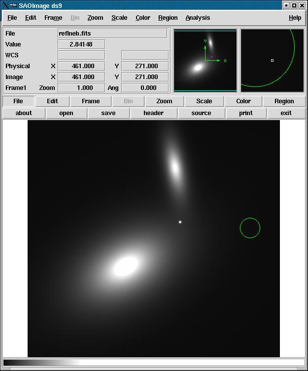 DS9 supports advanced features such as multiple frame buffers, mosaic images, tiling, blinking, geometric markers, colormap manipulation, scaling, arbitrary zoom, rotation, pan, and a variety of coordinate systems (including Image, Physical, Detector, and WCS). DS9 also supports FTP and HTTP access. The GUI for DS9 is user configurable.