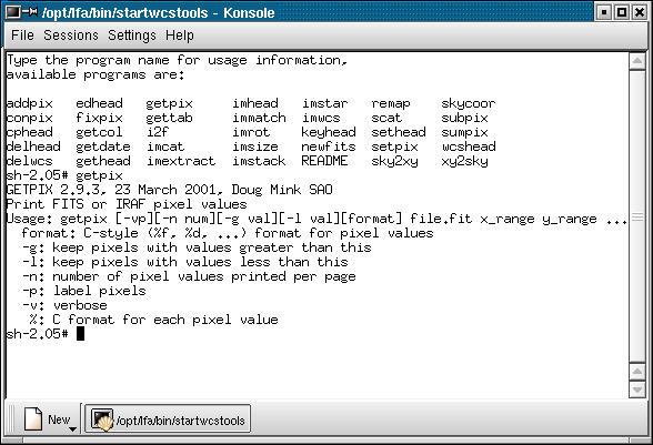 imsize Print center and size of image using WCS keywords in header imcat List catalog sources which should be found in the area of the sky covered by a specific image. Special catalogs supported include the HST Guide Star Catalog, the USNO-A2.0 Catalog, the Tycho-2 Catalog, the SAO Catalog, and the PPM Catalog.